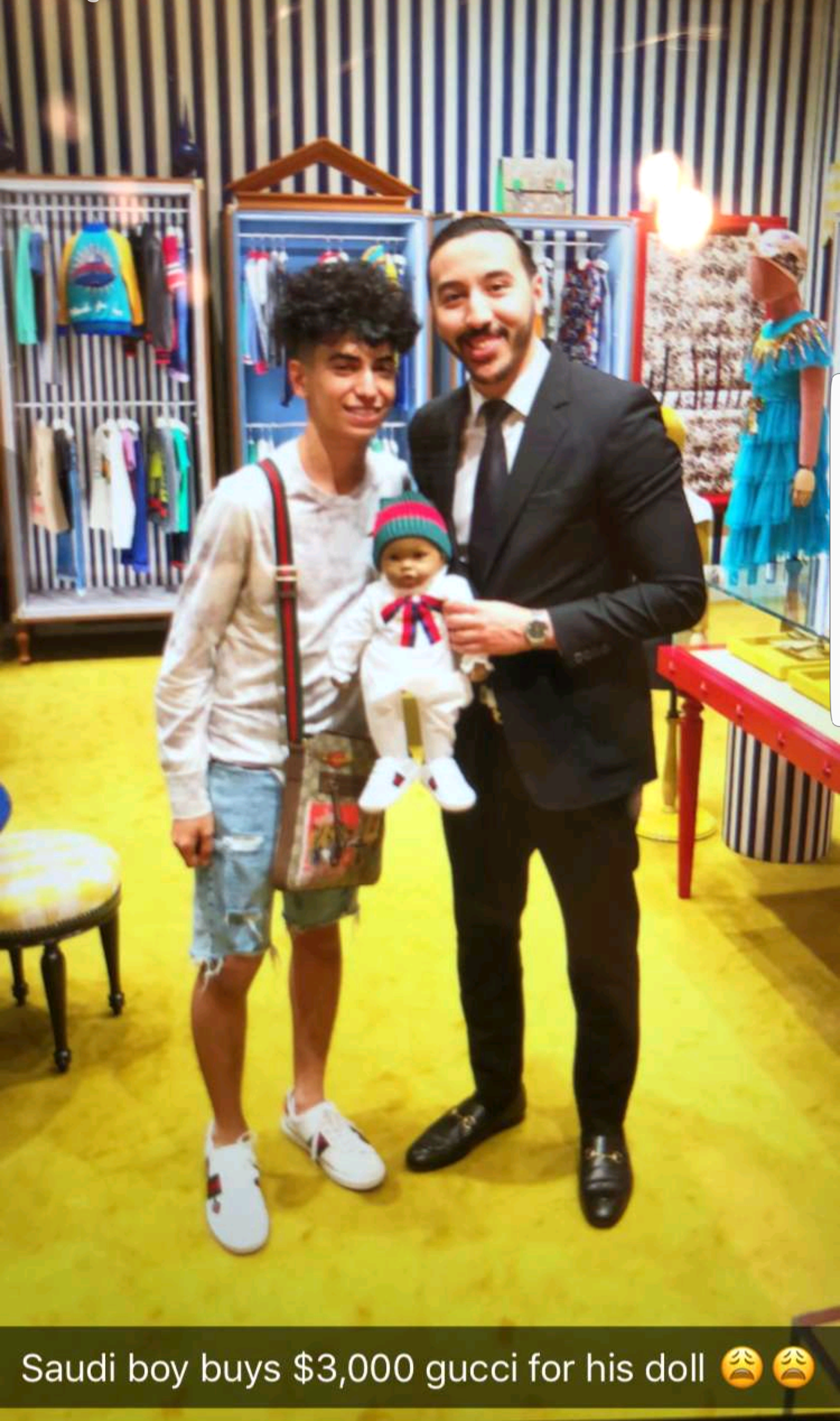 Véritable fanatique de la marque GUCCI, l’adolescent a tenu à couvrir entièrement sa poupée de vêtements de la même marque, de la tête aux pieds. Coût de la folie, 3000 dollars, soit environ 1.5 millions de francs CFA.