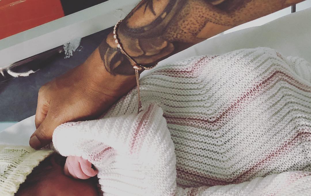 Sur le cliché qu’il l’a bien voulu, on y voit le nouveau-né (sans pour autant voir son visage) avec en légende un message adressé sa compagne qui n’est autre que la chanteuse Lola Rae qui stipulait : “ I Love You ”.