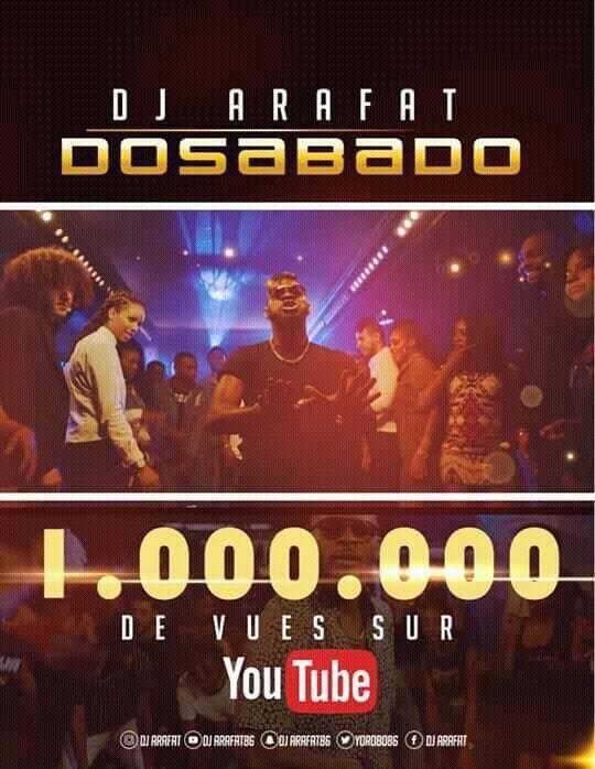 En plus de l’avoir porté en tête de lice sur la plate forme Spotfy devant Serges Beynaud, le ‘’Dosabado’’ vient de franchir la barre des 1.000.000 de vue sur Youtube en une semaine seulement.