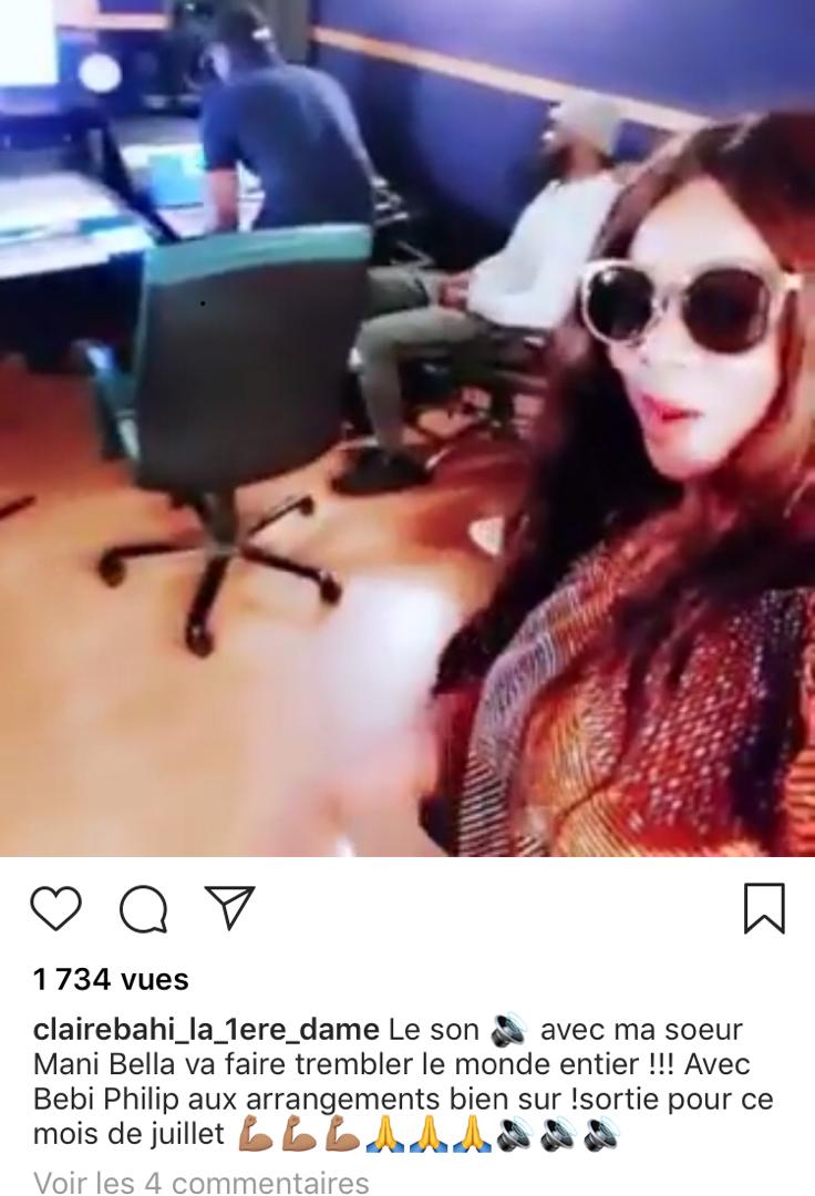 « Le son avec ma sœur Mani Bella va faire trembler le monde entier !!! Avec Bebi Philip aux arrangements bien sûr ! Sortie pour ce mois de juillet » a-t-elle légendé.