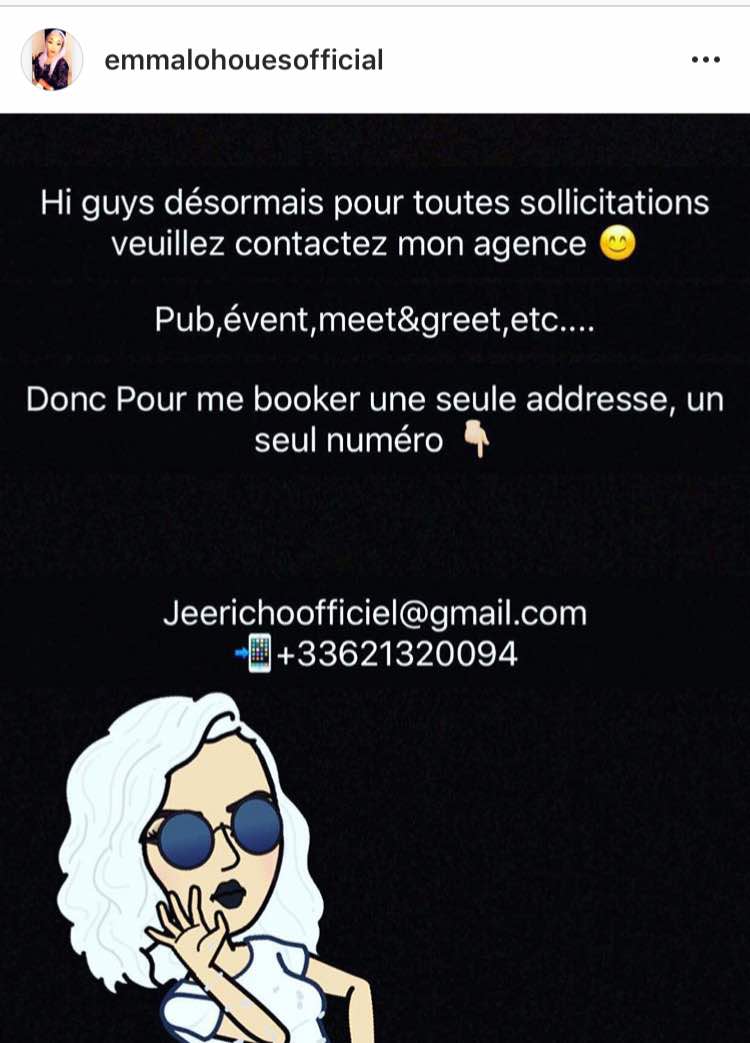 Dans un poste sur sa page Instagram l’actrice Ivoirienne a porté la nouvelle à ses followers en ces termes « Désormais pour toutes vos sollicitations veuillez contactez mon agence. Pub, event, meet&greet etc… » Appuyé de l’adresse mail et du contact de ladite agence.