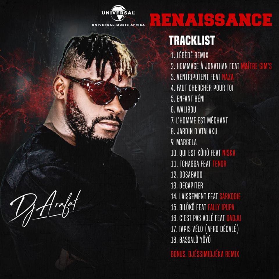 L’album « Renaissance » comportera 18 titres dans lequel on pourra également entendre les voix de Fally Ipupa sur le son « Biloko », de Ténor sur « Tchaga » et le Ghanéen Sarkodie qui apportera son flow sur le single « Laissement ». Outre ces nouveaux titres, « la Chine » pourra rekiffer « Enfant béni» et « Dosabado » ainsi que « Tapis vélo» cette fois en version afro décalée.